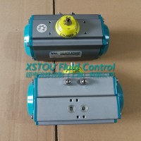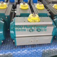 VAA气动执行器ART110DA ART160DA ART255DA ART435DA。 美国VAA气动执行器ART110DA ART160DA ART255DA ART435DA ART665DA ART1000DA适用于旋转阀门的双活塞齿轮齿条式结构,啮合,,输出扭矩稳定(0-8000N.m)。缸体材质为铝合金或不锈钢。气动执行器底部轴装配孔符合ISO5211标准,气源孔、输出轴的顶部和顶部的安装孔符合 NAMUR 标准,相同规格有双作用式、单作用式(弹簧复位),可根据阀门需要选择方向,顺时针或逆时针旋转。根据用户需要安装电磁阀、定位器、限位开关及手动操作装置。