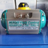 InterApp IA045D F03-F04气动执行器是以压缩空气为动力,通过活塞齿条的直线运动带动输出轴的齿轮传动,以转角行程输出的气动执行